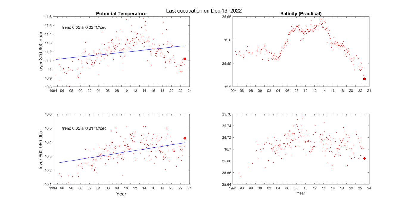 station has warmed about 0.3 C since 1994. This water